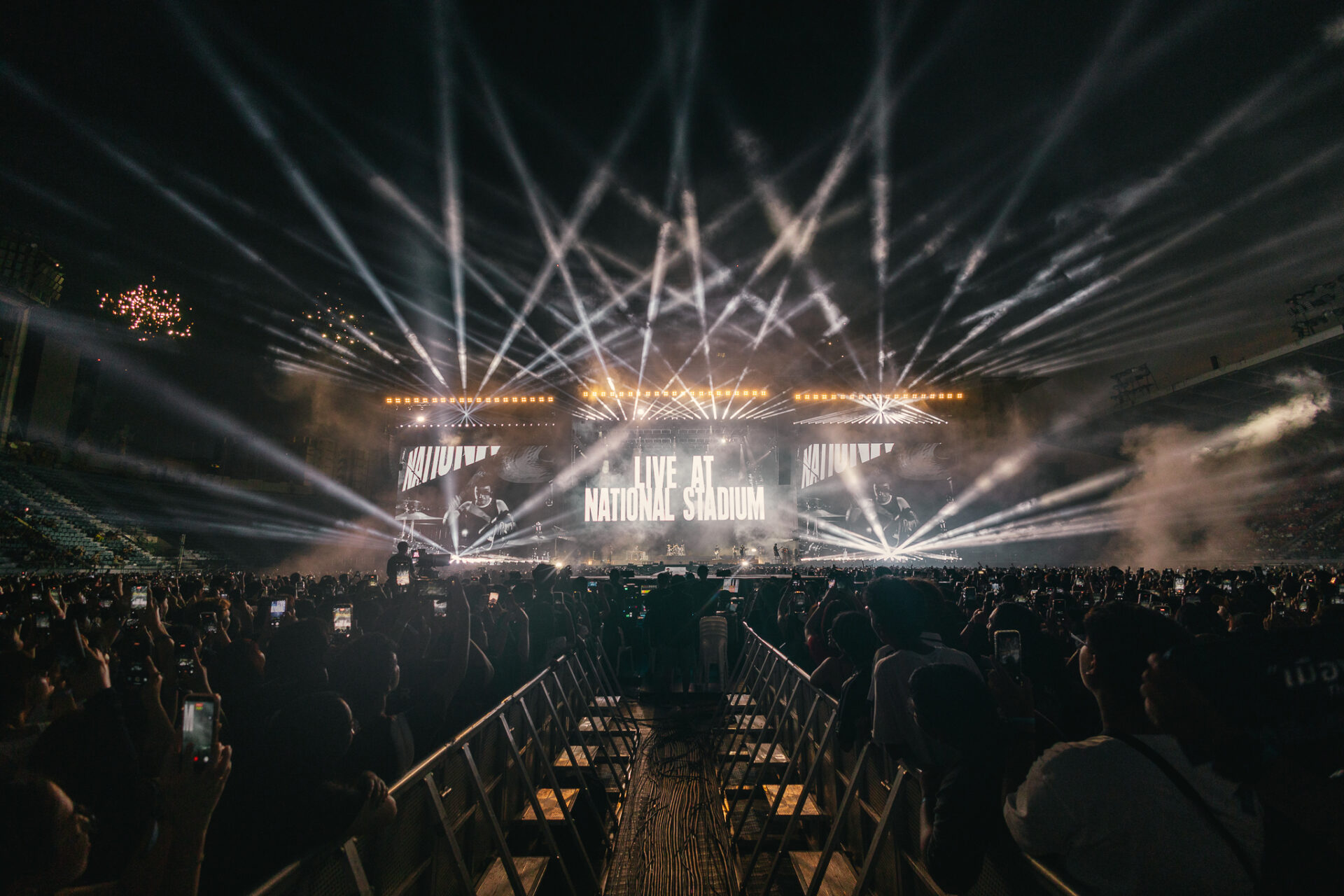 ตั้งแต่ช่วงเช้าตรู่ บรรยากาศรอบสนามศุภฯ คึกคักไปด้วยแฟนเพลงที่มารอคิวซื้อ Merchandise กันจนแถวยาวเหยียด พอตกเย็น โชว์ที่ดูแลโปรดักชันโดยทีม Idea Fact (GMM SHOW) ก็เริ่มขึ้น การออกแบบเวที แสง สี เสียง และจอ LED ถือว่าจัดวางมาได้พอดีและรองรับกับสเกลสเตเดียมกลางแจ้งได้ดีเยี่ยม